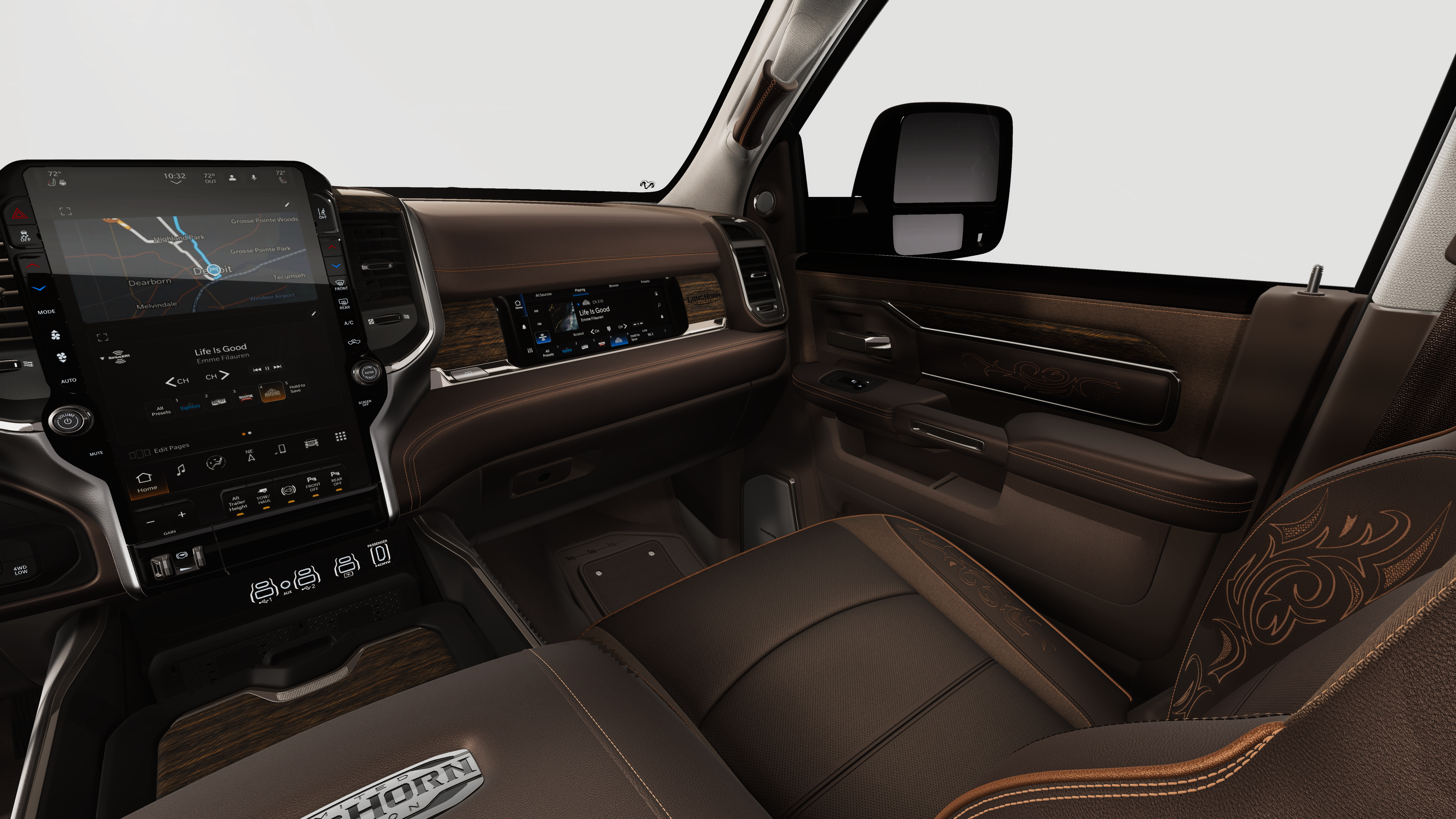 - Chrome Power w/Tilt Down Heated Auto Dimming Side Mirrors w/Convex Spotter, Power Folding, Turn Signal Indicator and Clearance Lights